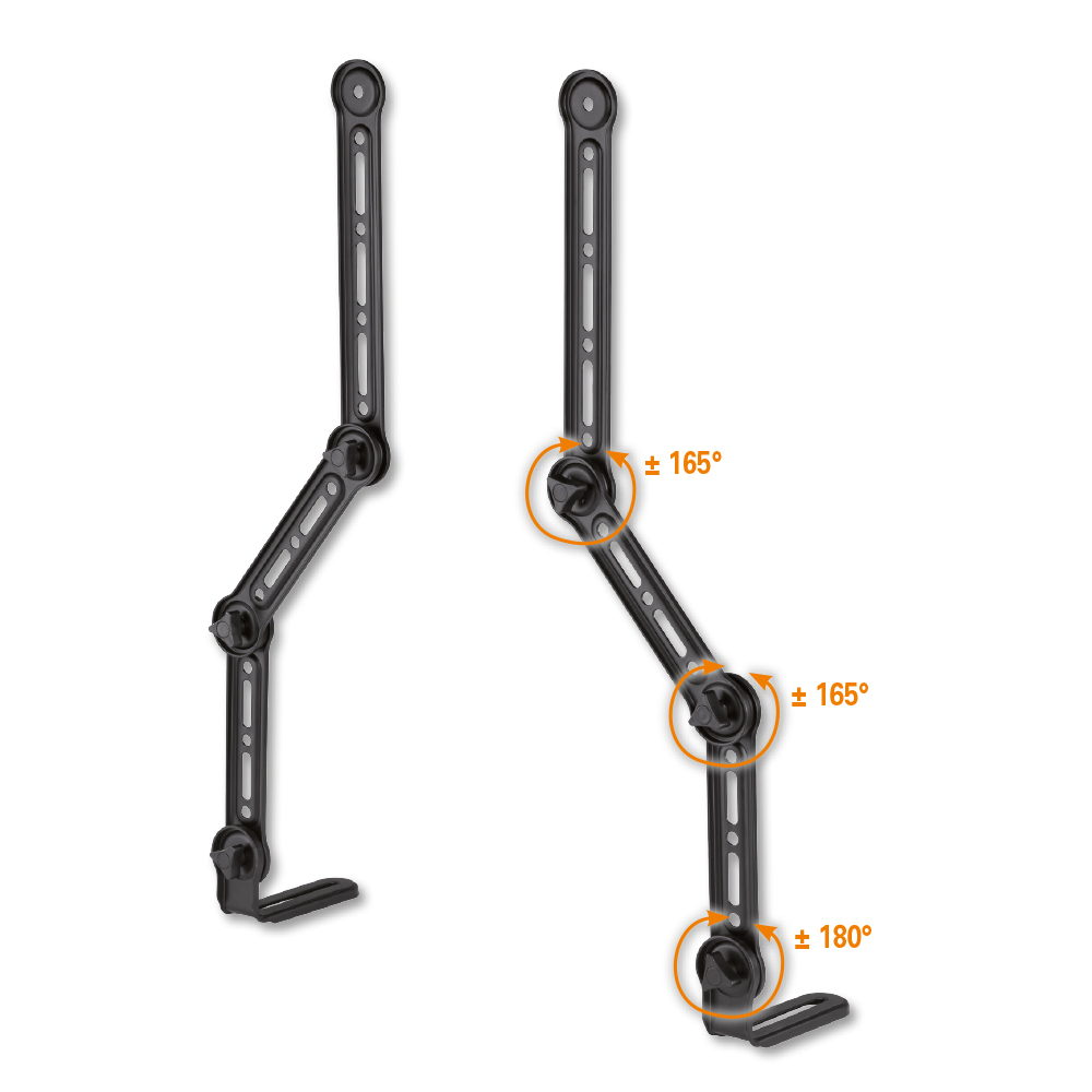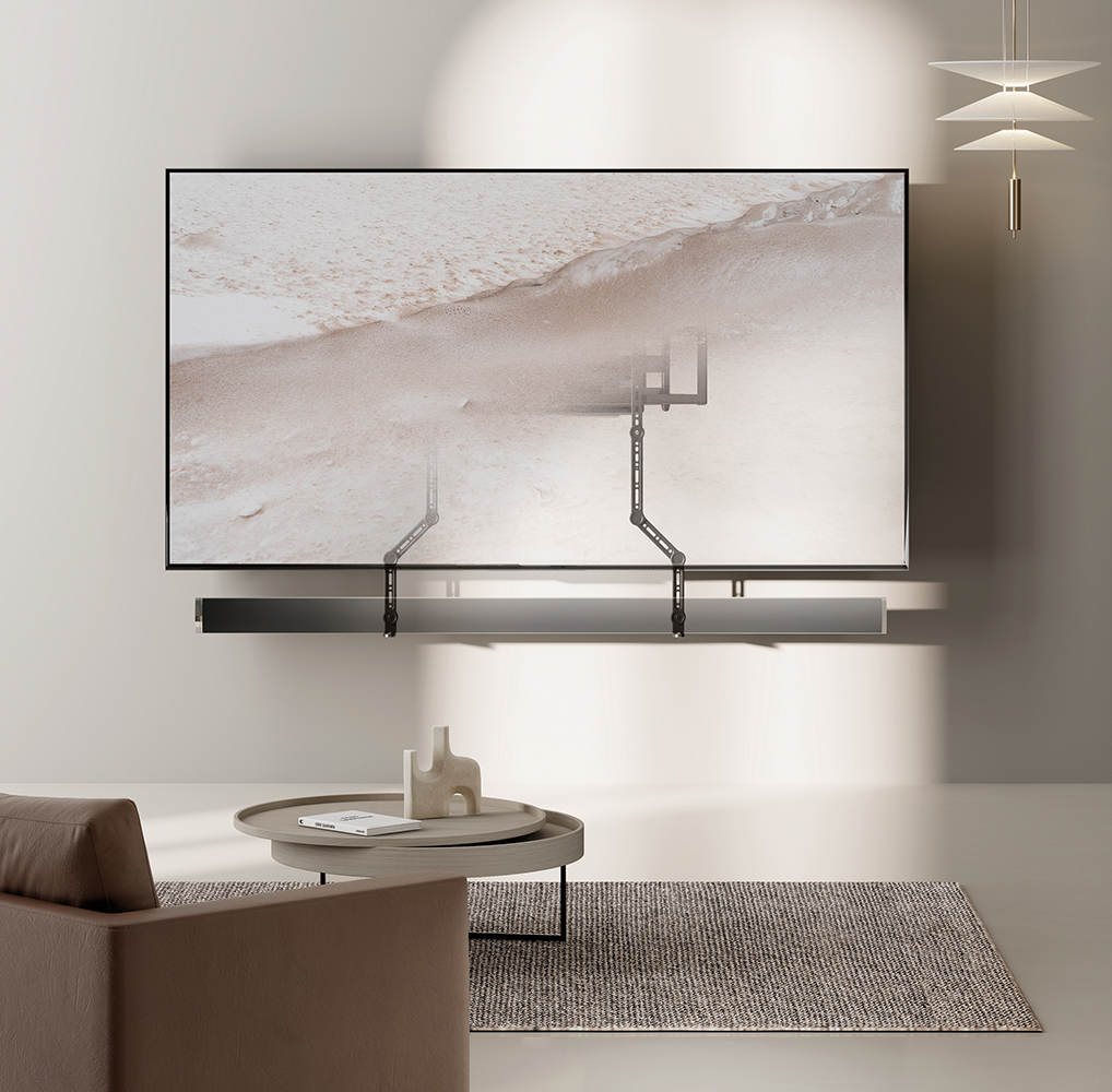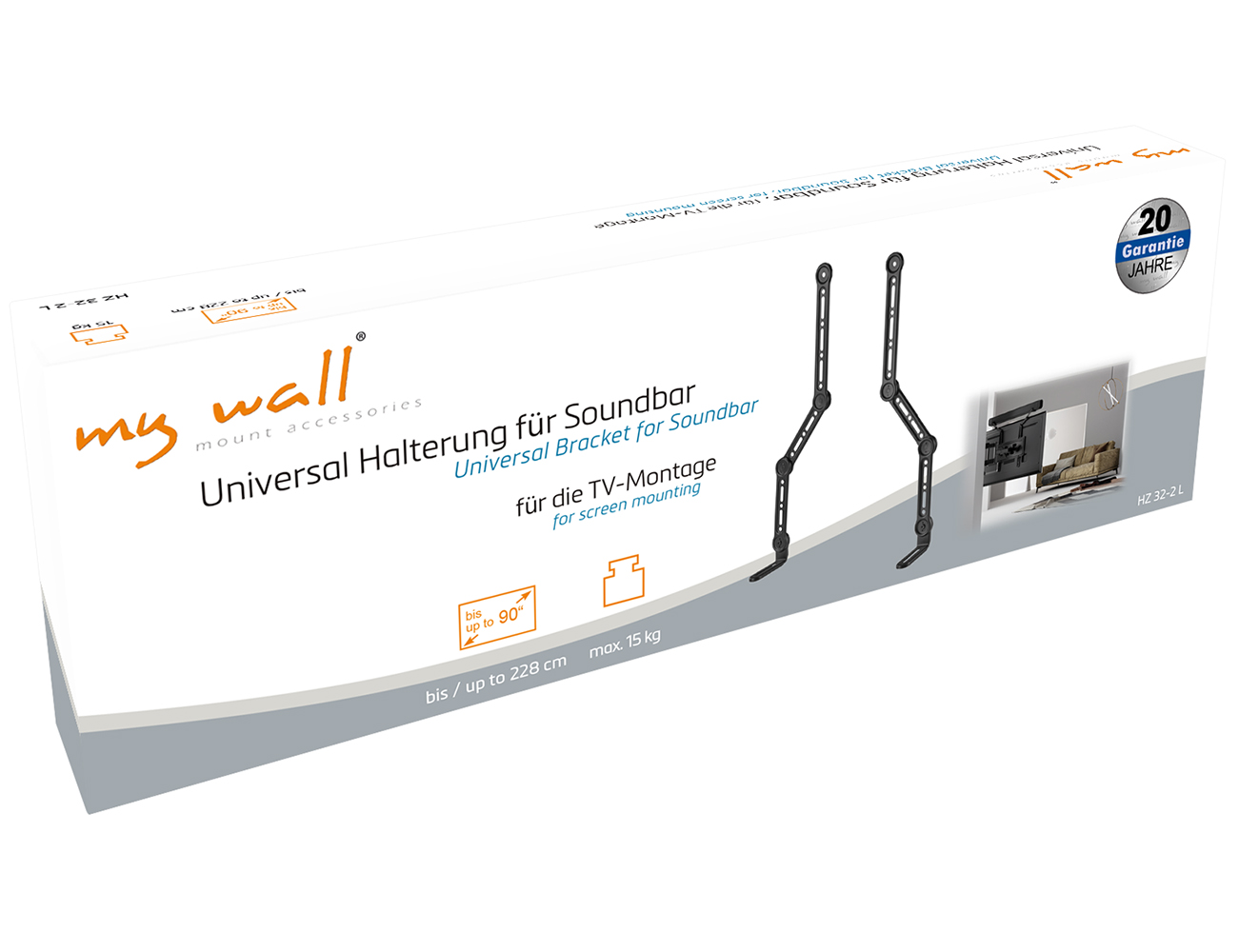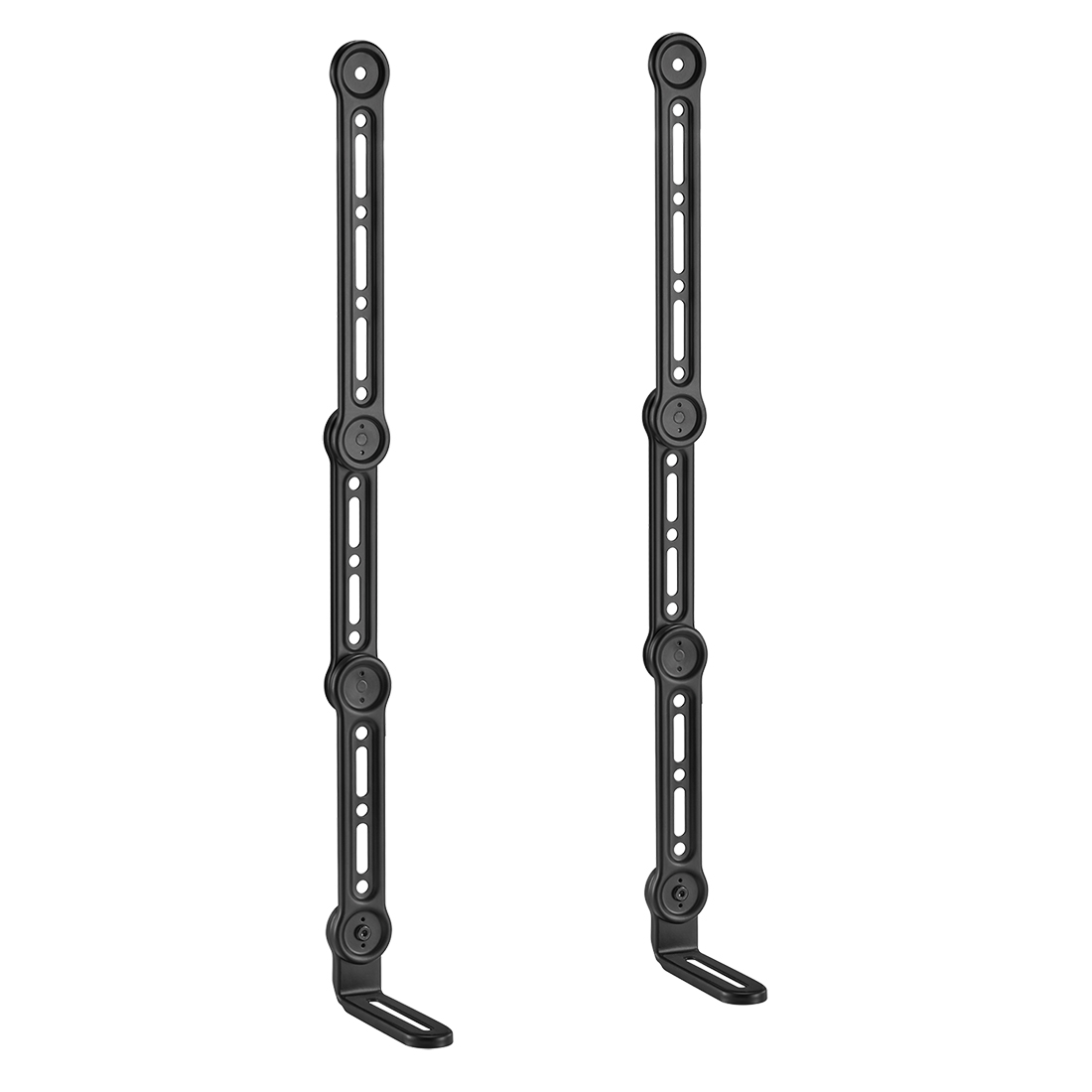 Universal soundbar bracket suitable for mounting directly on large televisions up to 90’. Practical and space-saving, the brackets fit a wide range of soundbars, regardless of their size or shape. With the adjustable bracket, you can easily adjust the position of your soundbar to achieve the perfect sound in any room.