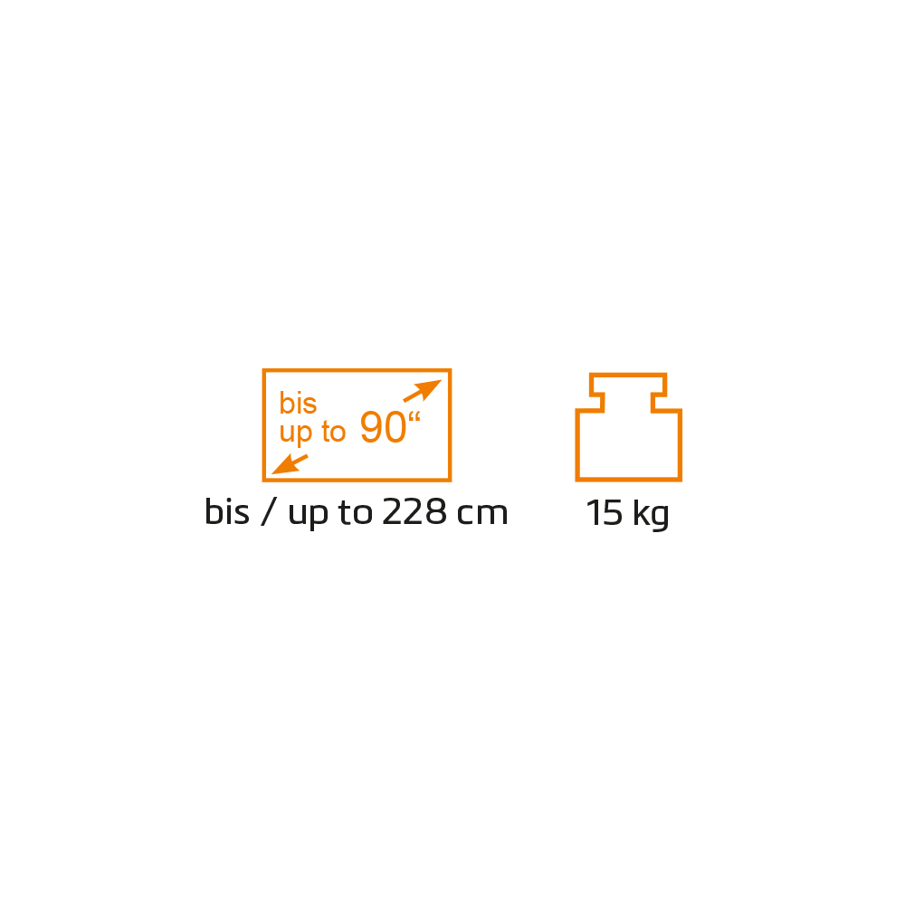 For soundbars with M4, M5 or M6 mounting hole, loads up to 15 kg, for screens up to 90" (228 cm)
