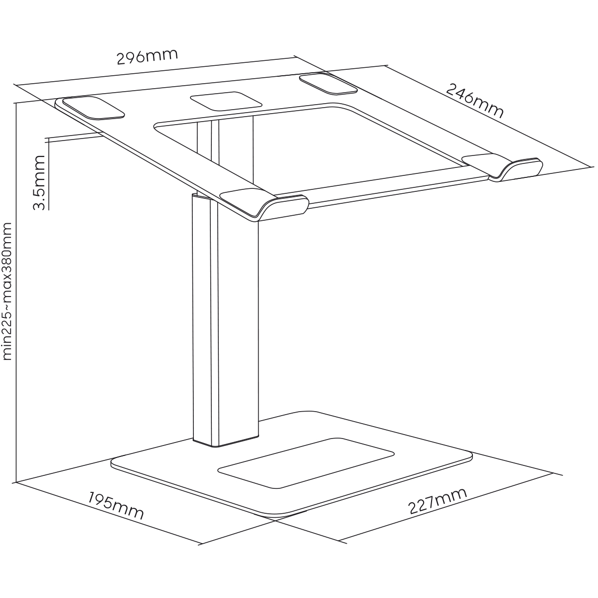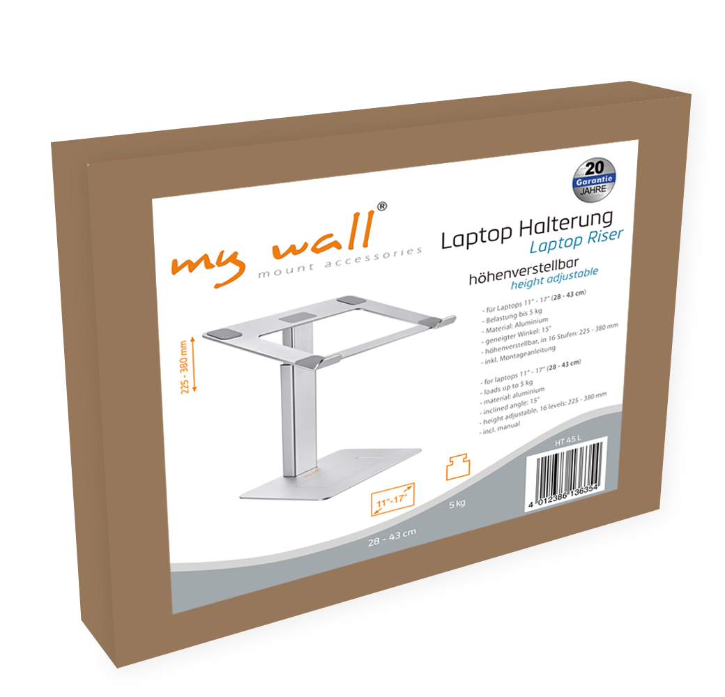 For laptops 11“ - 17“ (28 - 43 cm), loads up to 5 kg, height adjustable