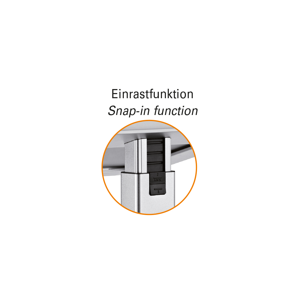 The laptop stand can be used individually. It is an optimal solution for sitting and also standing work. This laptop holder can be precisely adjusted to your field of vision in 16 steps, simply at the push of a button.