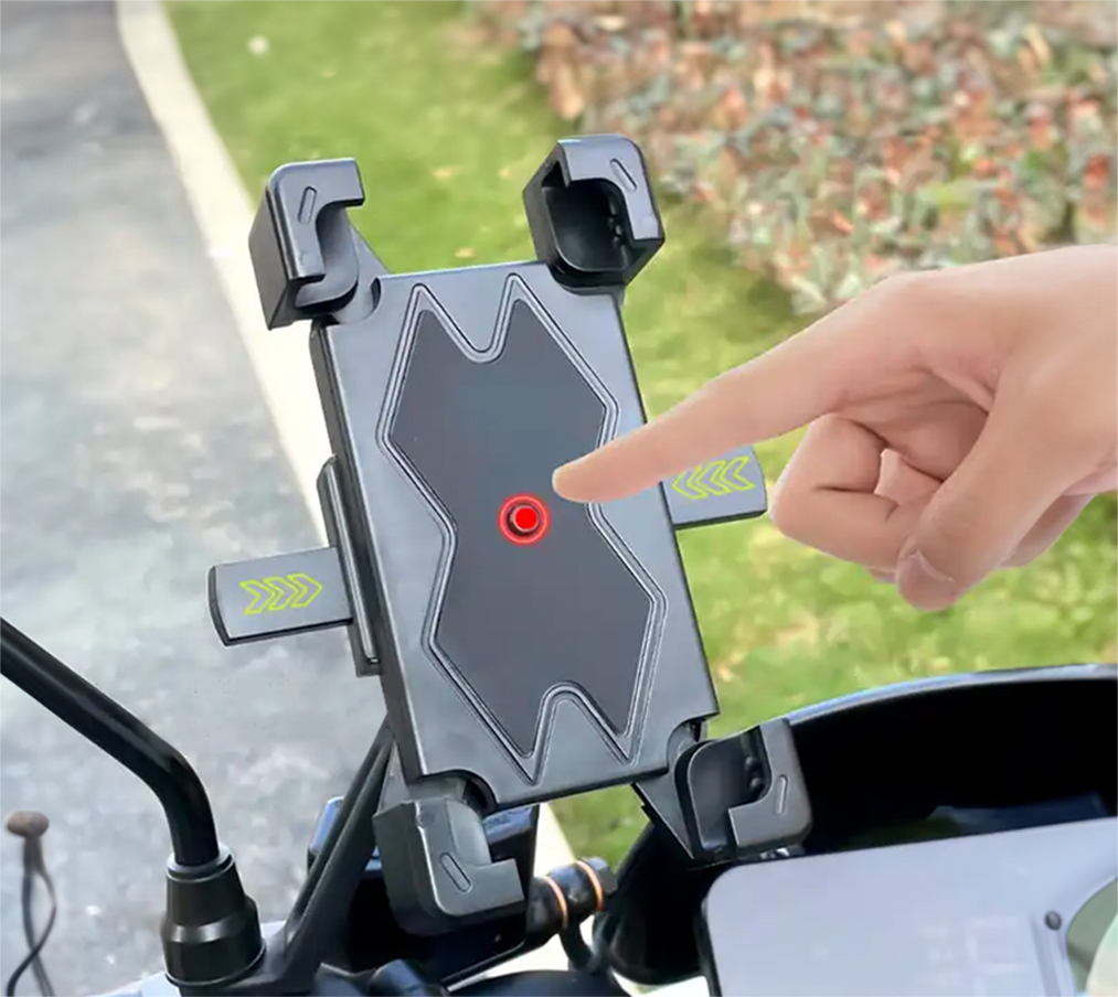 Thanks to the practical on-click mechanism, your cell phone can be attached in no time at all. Simply press your cell phone onto the holder and the locking mechanism grips your cell phone automatically and securely. Thanks to the quick-release mechanism, your cell phone can also be released from the holder with just one press.