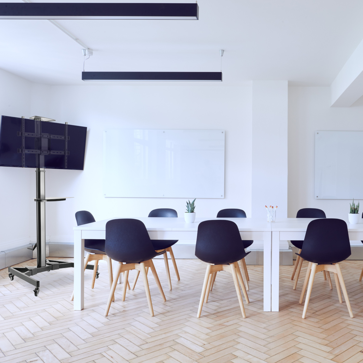 The TV stand with castors can be moved virtually anywhere you need it. This makes it the ideal companion at meetings, lectures or even at home. The mount is suitable for TVs with a screen diagonal of 37" - 70" (94 - 178 cm) and a maximum weight of 50 kg. The wheels can be locked to prevent it from moving.