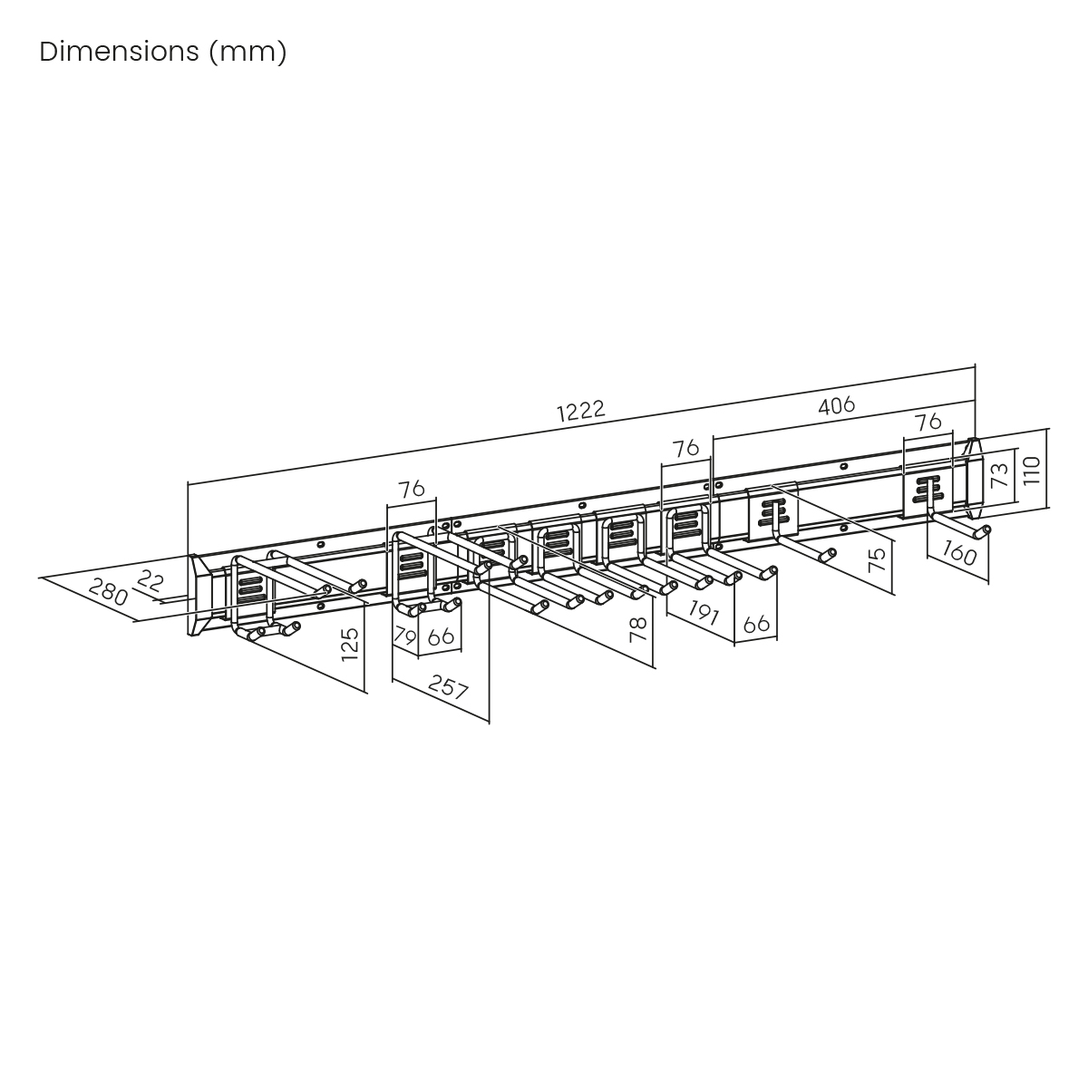 - 8 hooks (2x single hooks, 4x double hooks, 2x quadruple hooks)
