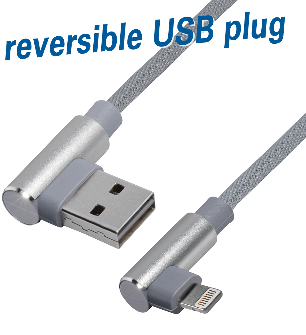 - Description: USB type A angled plug to 8 pin angled plug, lenght: 1,0 m, nylon braided, high flexible, black, grey