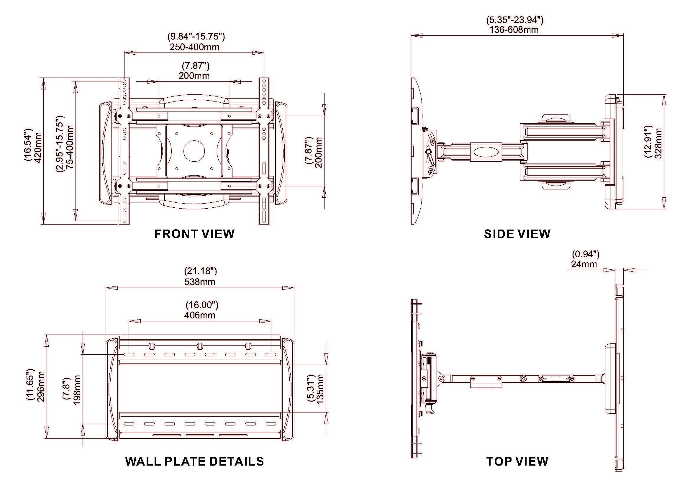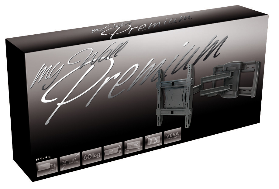 Extra strong premium wall mount that allows you to securely mount your TV with a screen diagonal of 23 - 42 inches (58 - 107 cm) and a maximum weight of 60 kg on the wall. To give you the best view of your favorite films at all times, you can pull the mount 49,5 cm into the room, tilt it 20°, rotate it 15° and turn it 180° sideways. This is also the best way to avoid annoying glare.