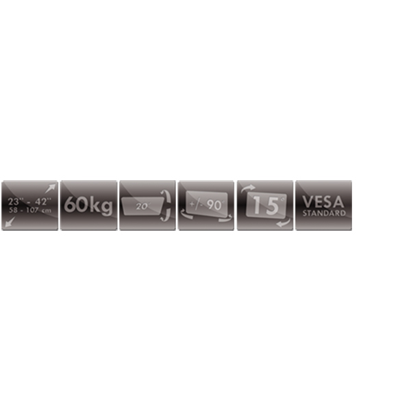For flat screens 23" - 42" (58-107cm), holds weight up to 60 kg