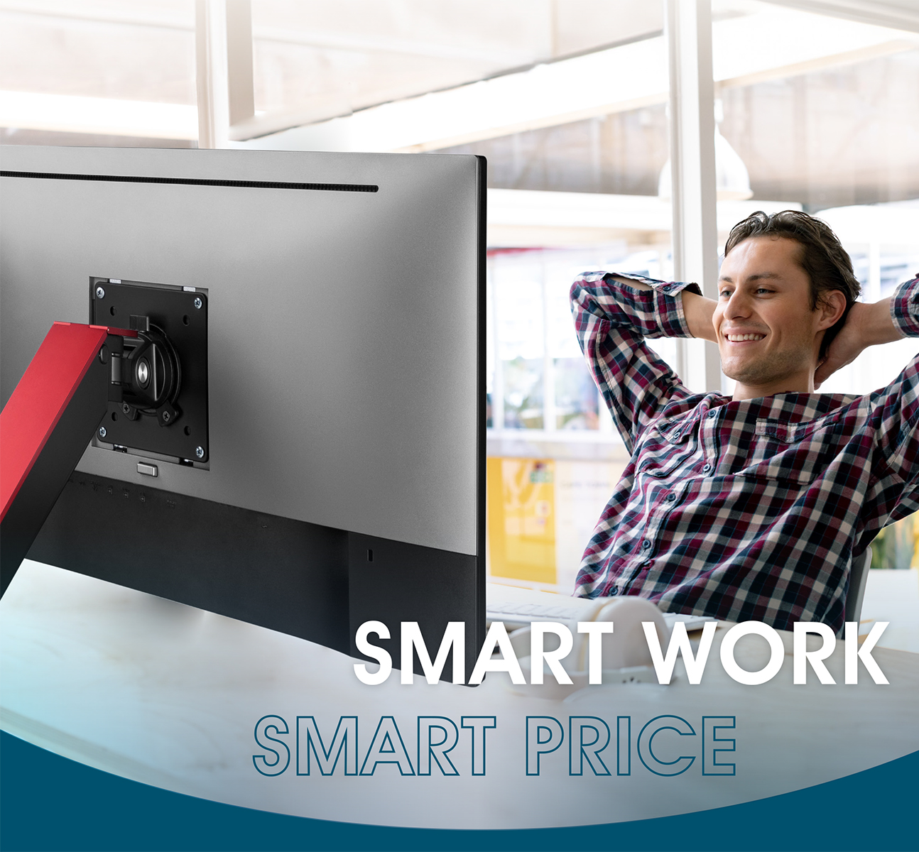 The clamp fastening enables secure fixing without drilling. If required, the monitor mount can also be permanently mounted using the enclosed adapter plate.