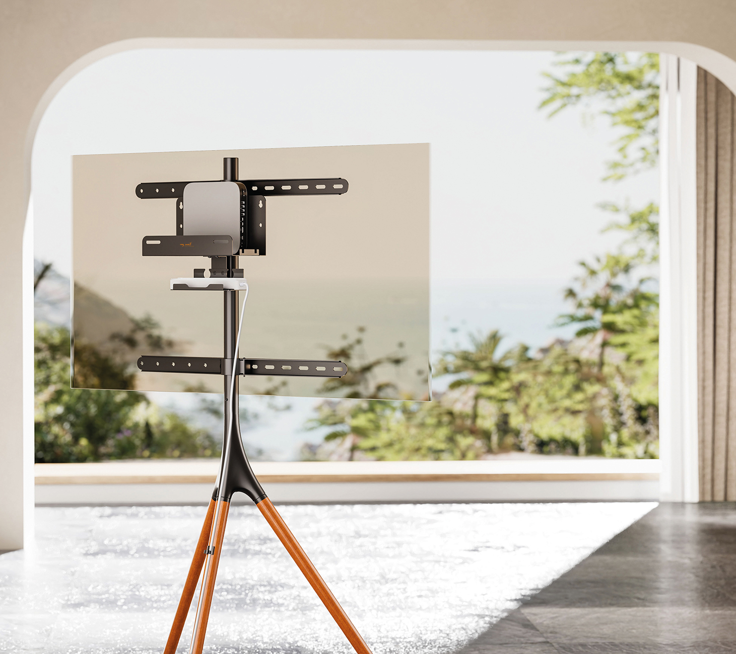 Die clevere Konstruktion der Halterung wird einfach an der Stange ihres TV Ständers befestigt. Das ermöglicht einen einfachen Zugang zu allen Kabeln und Anschlüssen. Dadurch wird die Installation der Geräte erleichtert und Fernbedienungen sind immer griffbereit.