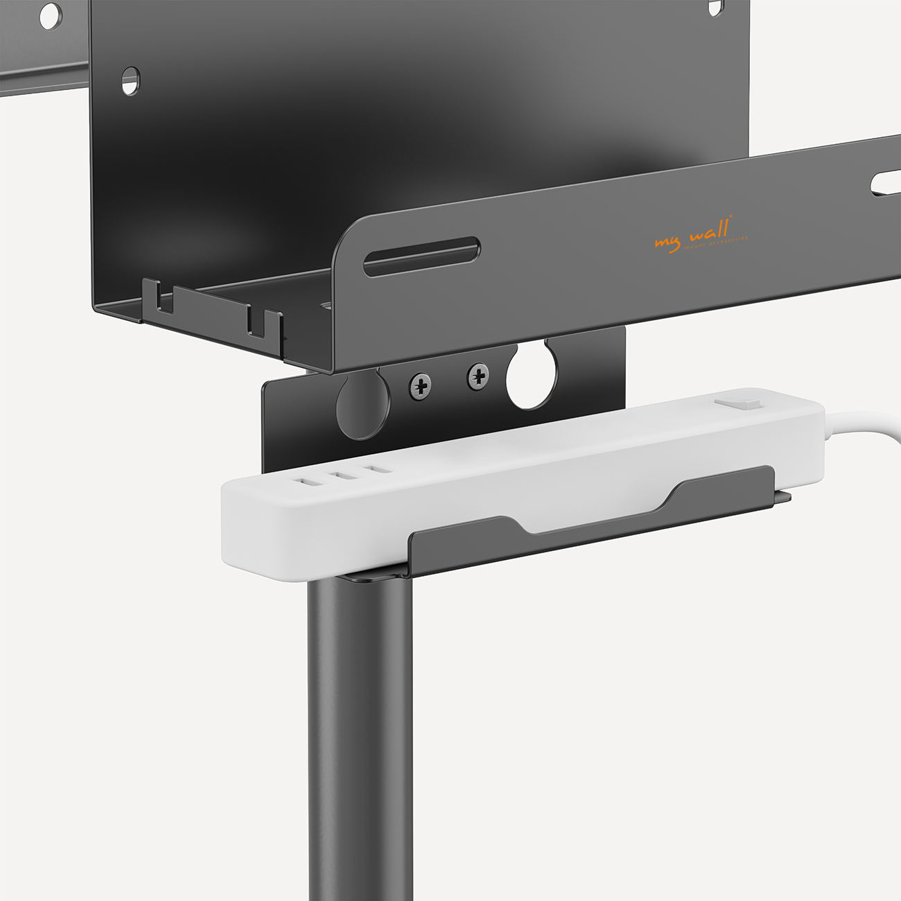 Die Halterung für zusätzliche Media-Geräte ist ideal, um mehr Ordnung zu schaffen und hat eine extra Halterung für Steckdosenleisten. Die vielseitige Halterung kann schnell und einfach an der Säule Ihres TV-Ständers mit einem Rohrdurchmesser von 35 mm befestigt werden. So haben Sie im Handumdrehen einen sicheren Platz für Streaming Geräte, IP TV Boxen oder Ihre Fernbedienungen gefunden.