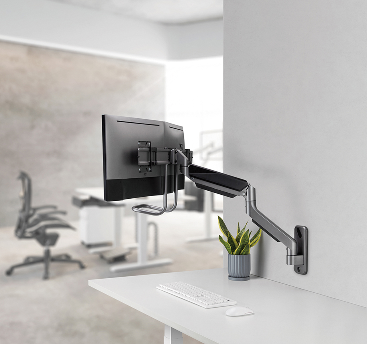 Ob im Konferenzraum oder am Arbeitsplatz, unsere Wandhalterung an der gleich zwei Flachbildschirme montiert werden können, ist immer griffbereit und leicht zu positionieren.
