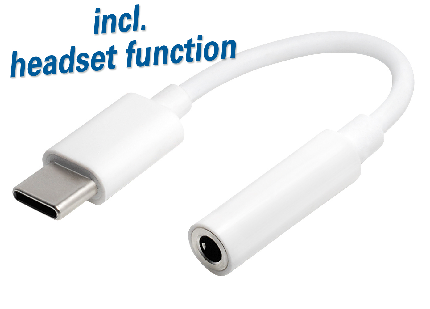 USB Typ C Stecker – Klinkenbuchse 3,5mm stereo, mit digitalem Chip für Headsetfunktion
